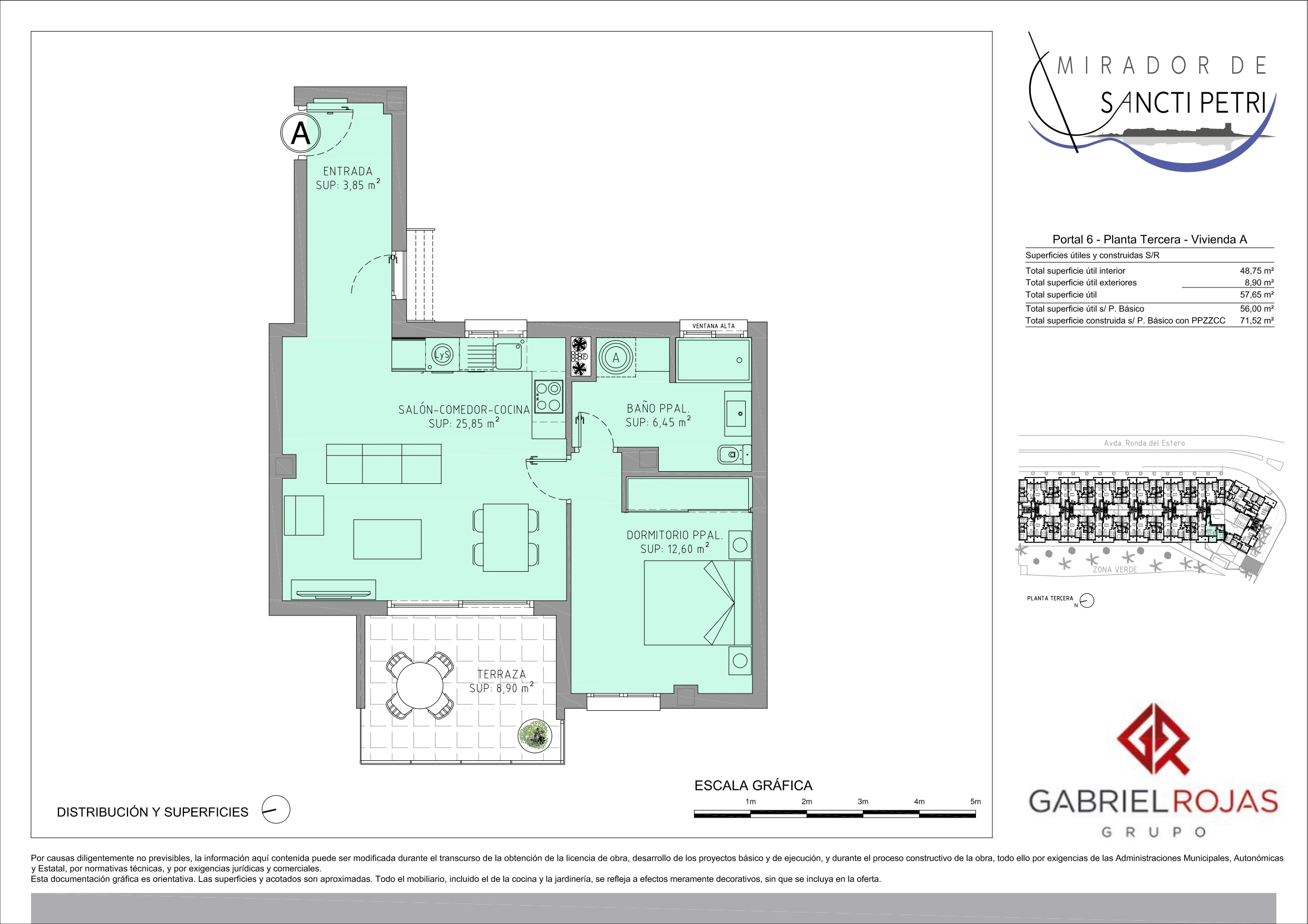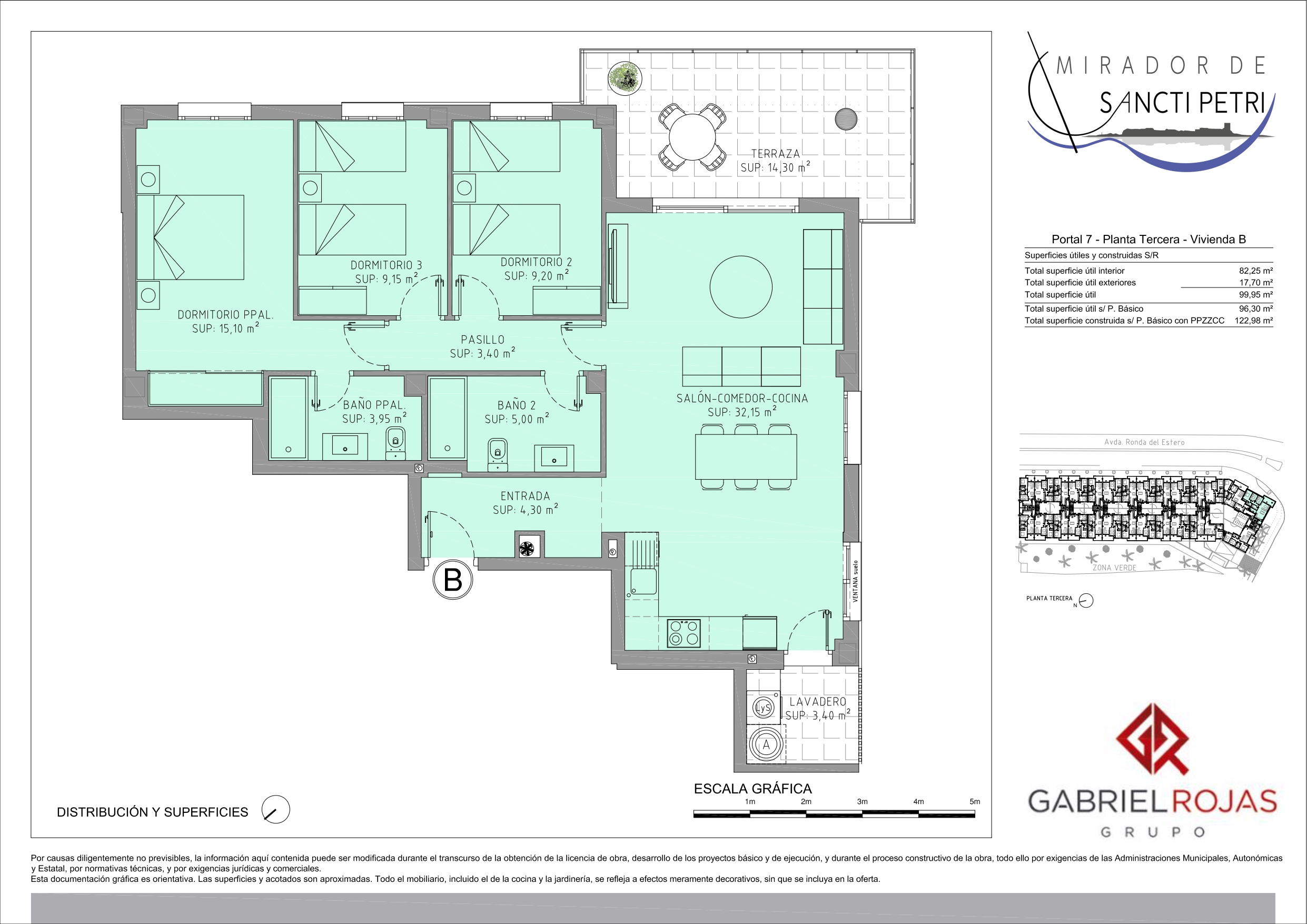 La documentación gráfica es orientativa y ha sido elaborada a partir del Proyecto Básico del edificio, pudiendo estar sujeta a modificaciones de carácter técnico o comercial. Equipamiento no incluido (mobiliario interior y exterior) de las viviendas y de las zonas comunes. Las superficies son aproximadas, pudiendo experimentar modificaciones en el desarrollo de la ejecución de la obra.